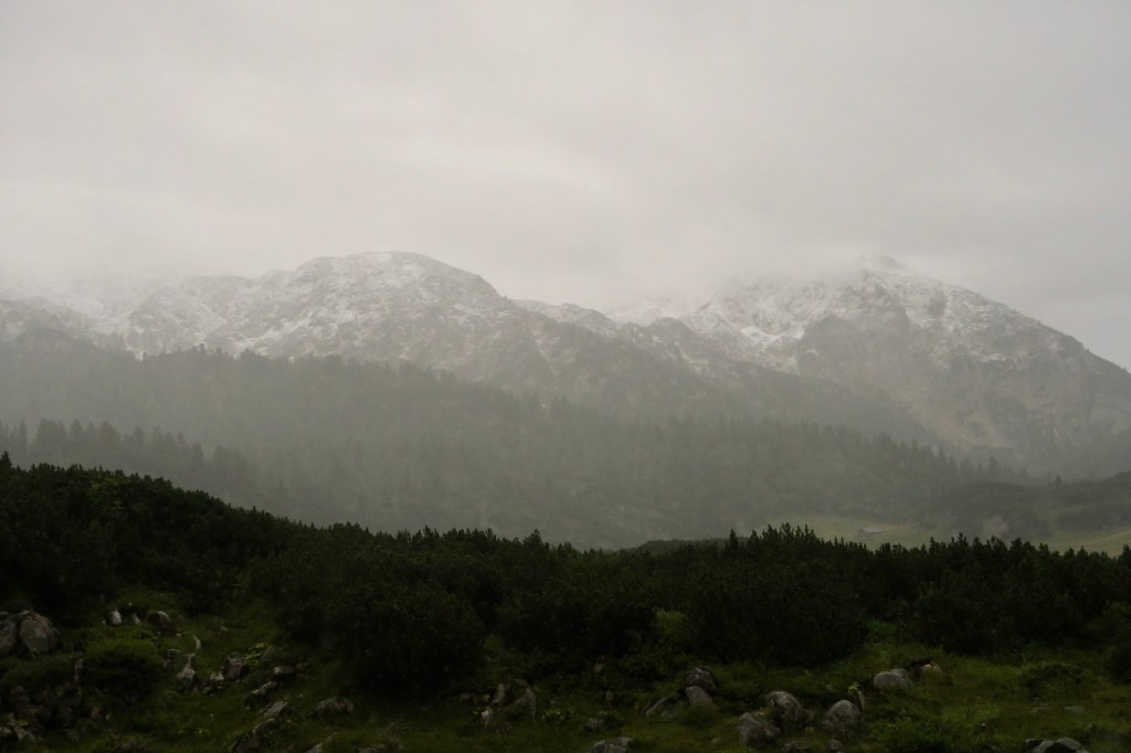 Nous voilà parties, quelques 500 km direction Bodensee (lac de Constance) et ensuite direction München et au sud: Berchtesgardener Alpen, un massiv des Pré-Alpes entre Salzburg et la Bavière. Il y a le très touristique Königsee et le Watzmann avec sa femme et ses 7 enfants et bien sûr pleins d‘autres montagnes et des randonnées les une plus jolies que les autres. Malheureusement, le temps nous boude, il fait froid et il pleut, mais ça se lève toujours, et même le soleil se pointe parfois…… et notre optimisme est sans frontières.