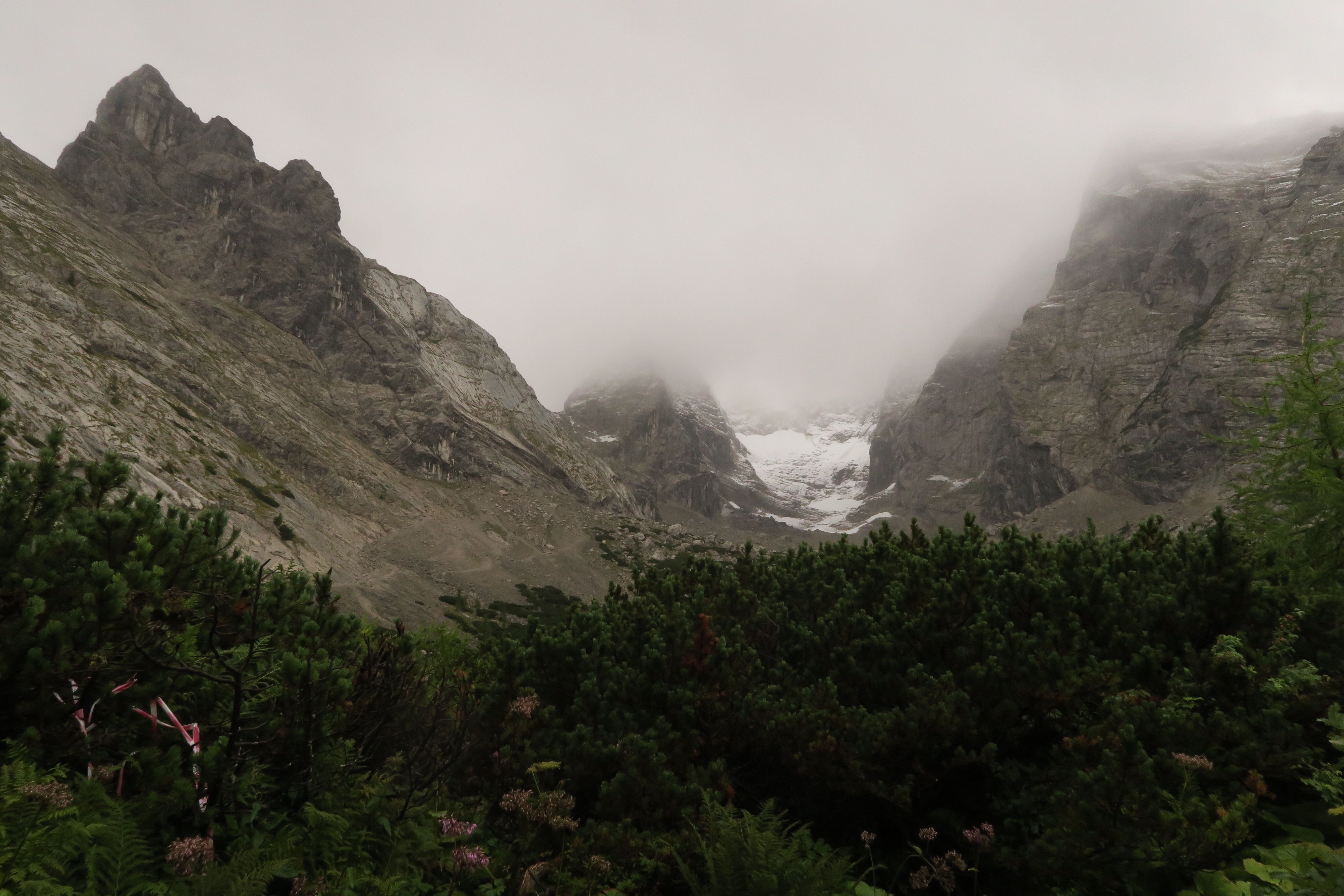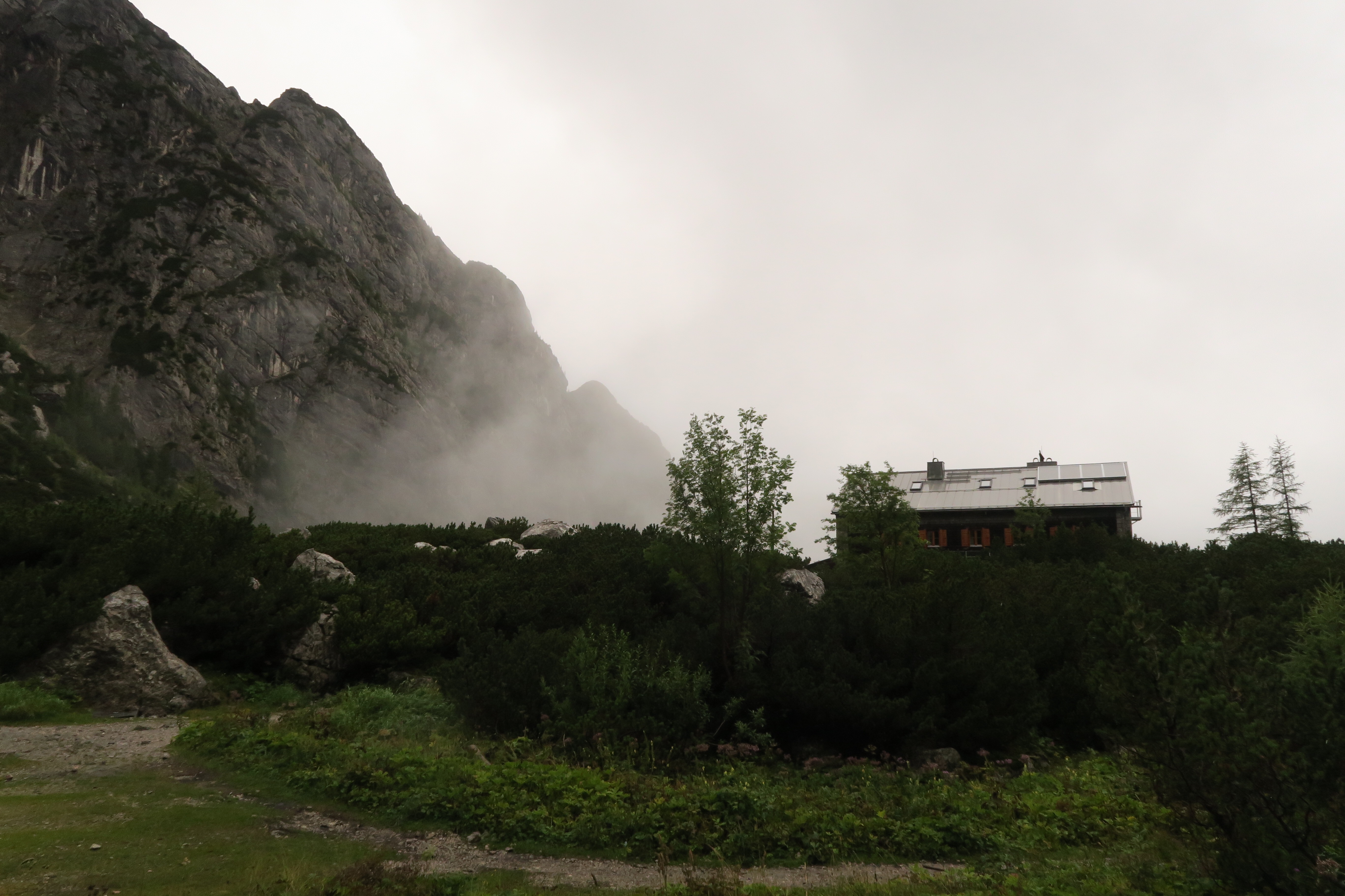Ce soir, nous dormons dans la Blaueishütte, 1680m avec son glacier du même nom juste au-dessus.Une montée bien raide et encore sous la pluie. Mais ici, le lieu est très confortable, le feu nous réchauffe, je peux vous écrire. On planifie nos prochaines étapes, et j’envoie des messages et des lettres de supplication à Saint Pierre pour un meilleur temps.