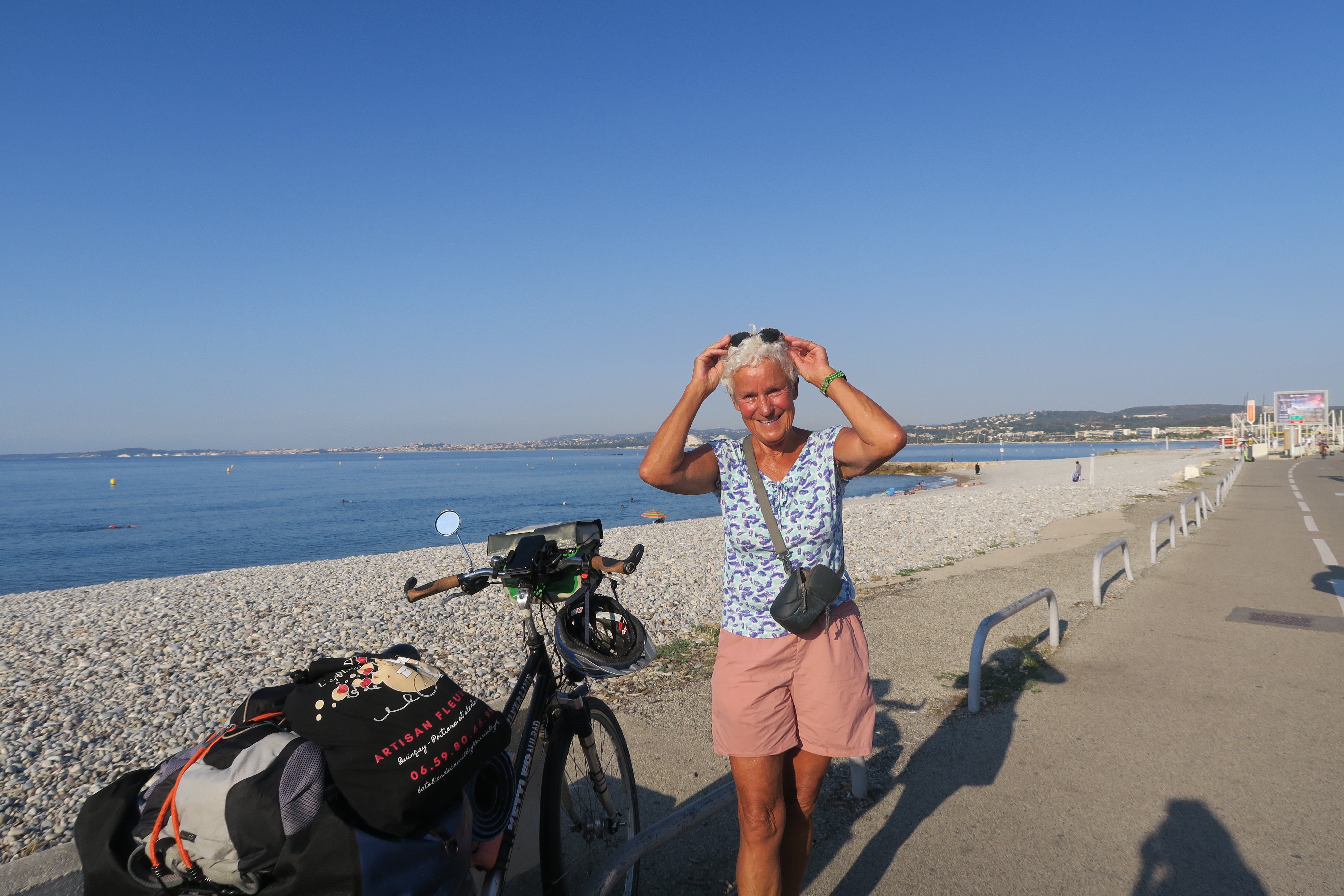 Ensuite Cannes, mais où est le tapis rouge ???? Ils me connaissent donc pas, la star du vélo? Je me baigne quasi inaperçue, mon vélo aussi, ça me rassure.