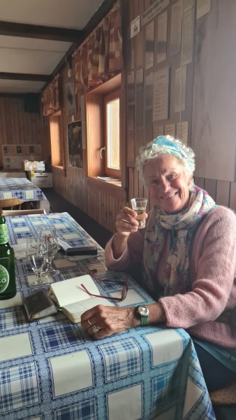 Le prochain refuge est à 4 heures de marche, sur des sentiers raides et étroits, pas question d’avoir le vertige. Tania, femme de notre âge, est la gérante de ce lieu, simple, sans douche, mais un bon feu nous réchauffe cœur et âme. La nuit il y a de l’orage et le lendemain il pleut.