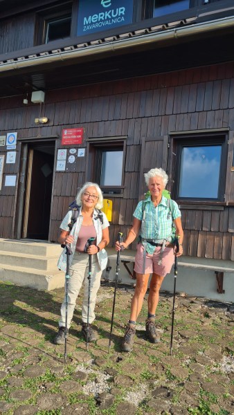 960 m a monter pour arriver au refuge de Kriski. Bon accueil, pas mal de jeunes et moins jeunes viennent ici après leur travail pour faire une compétition à qui arrive au plus vite, bière et schnaps pour tout le monde ensuite.