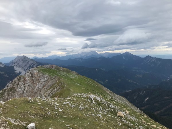 On continue notre rando dans les Karavankes côté slovène. Le refuge de Roblekov est à 1657 m, et le chemin pour y aller est bien raide. Mais la vue sur les alpes juliennes est fantastique.,