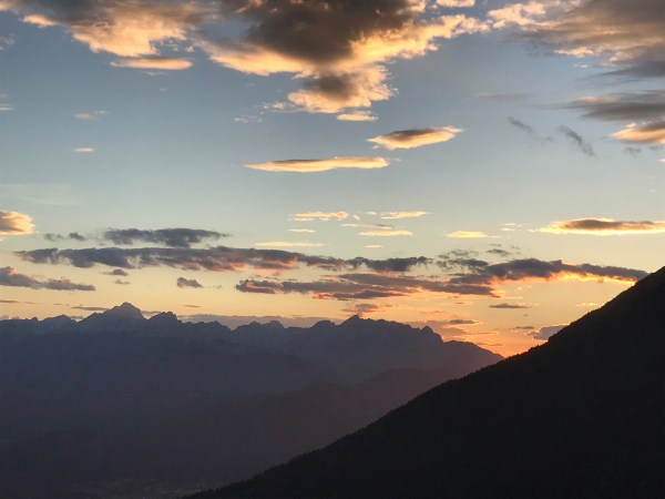 Dans note prochaine hutte, la Valvasorev, nous apprécions la cheffe qui parle bien allemand et sa cuisine est simple mais très bon. Le lendemain nous faisons une excursion au spot touristique le plus parcouru: le lac le Bled. Certes, c’est beau, mais tous ces touristes en voiture nous fatiguent, mais on se baigne et on revient en bus et ensuite 2 heures de montée raide avec un détour involontaire par un pic de montagne. On arrive juste avant la nuit tombant.