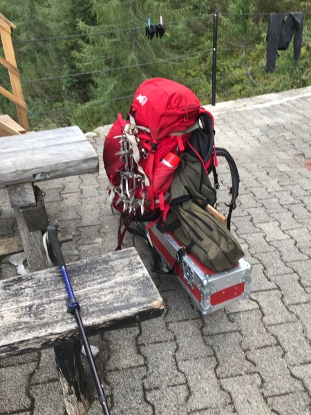 Tous ce finit bien et on se détend à la hutte suivante en compagnie d’une équipe de chercheurs : géologues, biologistes, mathématiciens. Ils reviennent d’une excursion avec des échantillons du glacier et leur instruments de mesures. Je n’aurais pas voulu porter leur sacs: