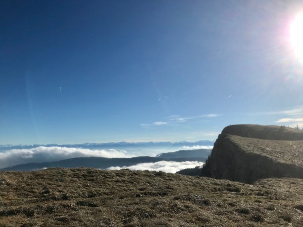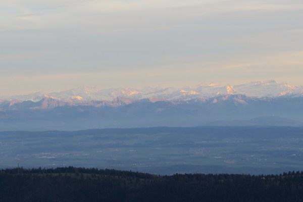 On ne doit pas me dire ça deux fois: me voilà partie, toujours avec train et bus, à découvrir ce beau lieu au pied du Mont d’Or. Et c’est aussi le but de ma première balade que je fais avec en prime un ciel bleu d’azur: le Mont d’Or, 1463 m. On retourne le soir avec Danielle, qui vient d’arriver, pour le coucher du soleil.