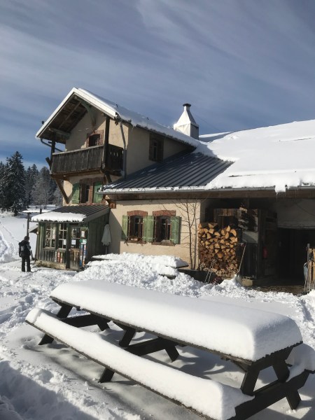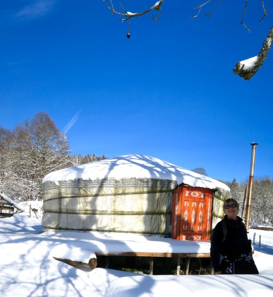 Le temps est moins beau pendant deux jours, mais marcher autour du lac Saint Point et faire une halte déjeuner dans un restaurant vieille France 4 Étoiles, on oublie la pluie. Le « Highlight », c’est à dire la belle surprise, était la journée de neige ( au moins 40 cm sont tombées la nuit) et notre boucle en raquette sous un ciel, on ne peut plus bleu. La petite auberge « la petite échelle » a gardé tout son charme avec des yourtes en pus, on se croyait en Mongolie. Quel bonheur !