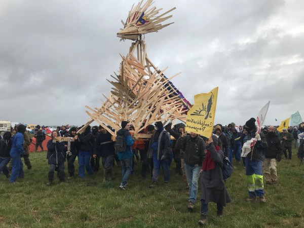 J’ai donc pris sur moi et je suis partie avec une petite équipe de Quinçay, direction des Deux Sèvres. En route on a trouvé d’autres manifestations et des tracteurs de la confédération des paysans, on a eu droit aux nombreuses contrôles et fouilles. A 19 heures on était sur le big campement avec 4000 d’autres manifestants. Il pleuvait des cordes, mais on était bien dans notre petit camping-car de Maïwenn.