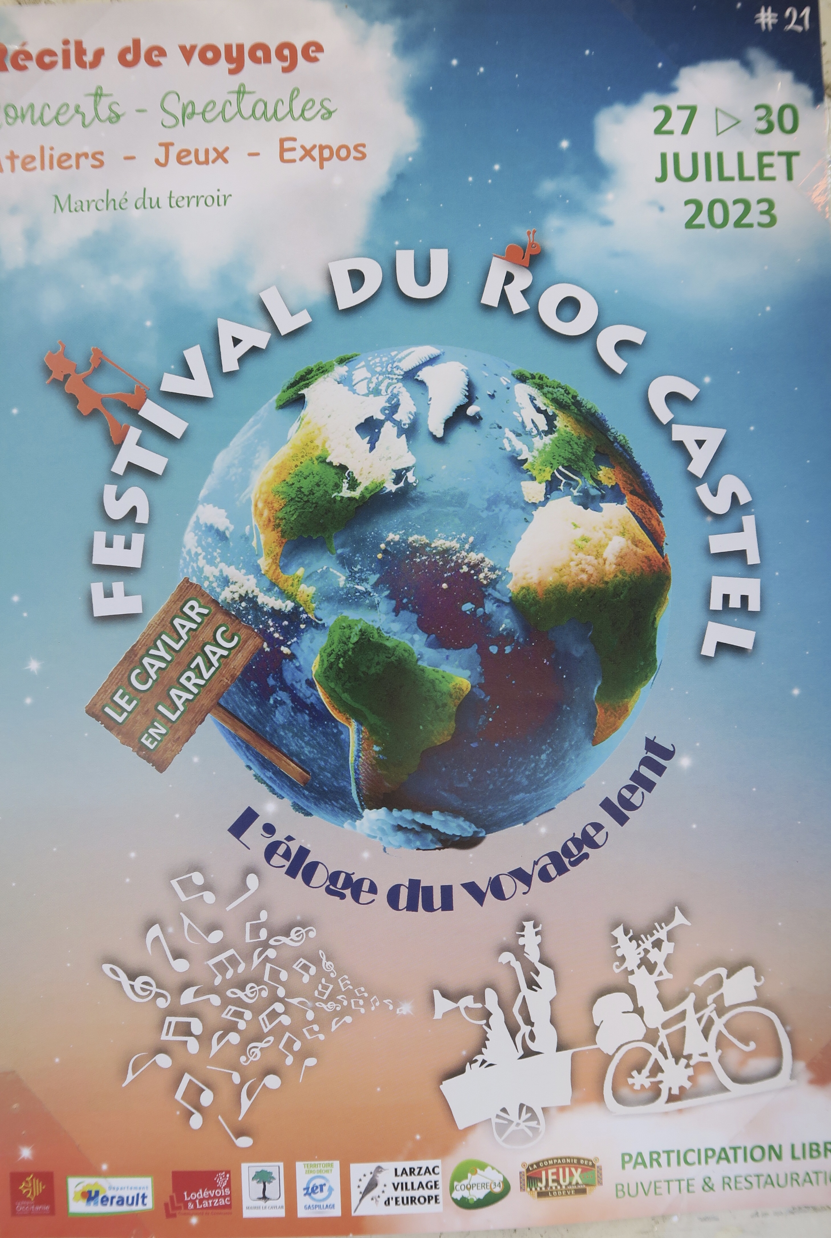 J’ai choisi mon tour de vélo cette année grâce à Brigitte, une cycliste avérée, que j’ai rencontré l’année dernière dans un festival de vélo près de Toulouse. Elle m’a invité dans son village, Le Caylar, Roc Castel, en plein Larzac, pour un super festival : L’éloge du voyage lent ! Et ça c’est tout un programme.