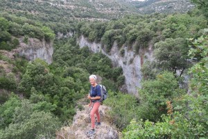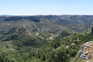 En partant chez Brigitte, j’ai roulé vers le cirque de Navacelles, un site géologique grandiose, profond de 300 m. J’ai trouvé un peu par hasard et grâce au voyage lent, où on rencontre facilement les gens, un aire d’accueil dans un petit village et aussi deux compagnons de randonnées, venue du festival du Caylar, Pascal et Christophe. Le lendemain, on a fait une super randonnée dans le cirque de Navacelles, magnifique et unique.