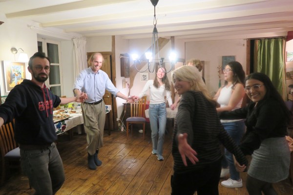 J’avais invité des amies et amis de mon village, un helper qui est venu l’année dernière et qui est de retour au pays et une jeune française qui a proposé de m’aider quelques jours dans mon jardin via le site de Helpx. C’était donc un joyeux mélange et la soirée était très chaleureuse, joyeuses et les mets succulents (Arepa, empanada, Patacones avec Ahagado ), tout cela avec une « Erdbeerbowle » und Zwetschgenkuchen vom Blech ».