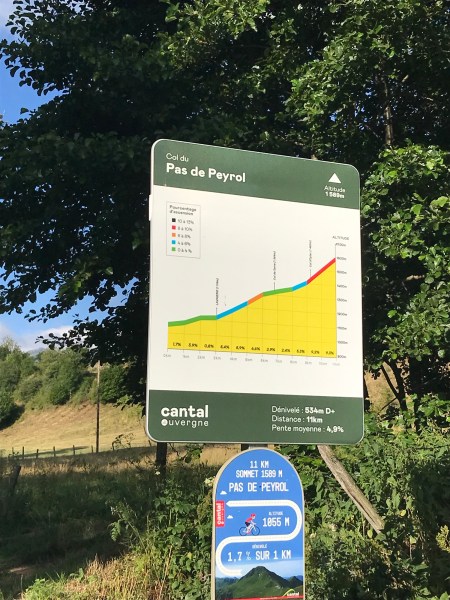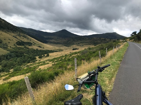 Et le grand site de France : le Puy Mary n’est pas loin. Je m’arrête dans un beau village de Dienne, dans un traditionnel gîte d’étape, où je pose mes affaires et hop, la montée sur le col de la Serre et le Pas de Peyrol avec un bon coup de pédale, merci moteur Bosch et je suis au pied du Puy Mary, qui n’attend que ça : que je lui grimpe dessus sur ses 1787 m, c’est pas le plus haut mais le plus spectaculaire des puys. Et c’est raiiiiid.