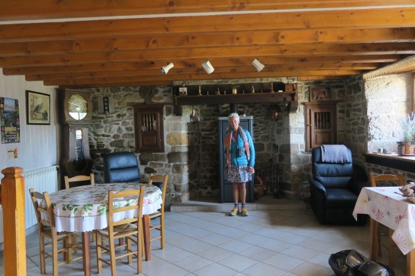 Je fais connaissance avec un Hexatreker, qui arrive juste pour faire sa pose déjeuner. Le Hexatrek est un chemin, qui part de Wissembourg ( mais oui, Chantal !) et qui s’arrête à Hendaye, ce trek parcours quasiment que des montagnes, des Vosges jusqu’au Pyrénées. Incroyable ! Ce gîte est sur leur chemin. En discutant avec Françoise, nous nous trouvons des points communs, par exemple elle aime bien aussi l’Arche et connais le lieu depuis longtemps.