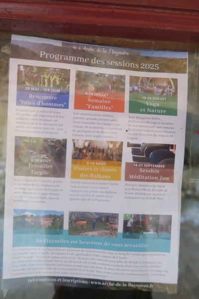 Une belle découverte était la Communauté de l’Arche, situé en plein Haut Languedoc au milieu de nulle part. J’étais invitée par deux jeunes que j’ai connu à Quinçay en fabricant une yourte chez Guillaume. Cette communauté existe depuis 50 ans. L’Arche a été était fondé en 1948 par Lanza del Vasto sur le modèle des ashrams de Gandhi, dans la lignée du sentiment pacifiste et du mouvement pour la non violence ( je cite)
