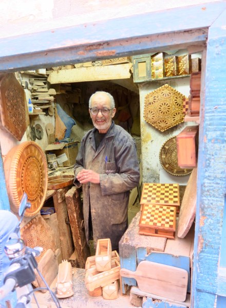 Pendant des journées entières je me balade dans les ruelles de la médina. Beaucoup de stands pour les touristes, un peu tous les mêmes, qui exposent les différentes huiles d’argan, des poteries, des tapis, des articles de souvenirs de tous genre. Moi, ce qui m’intéresse, c’est des ateliers des artisans, qui travaillent sur place le bois, la sculpture ou là poteries, des tisserands, des mécaniciens, beaucoup de couturiers.