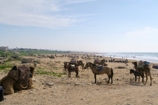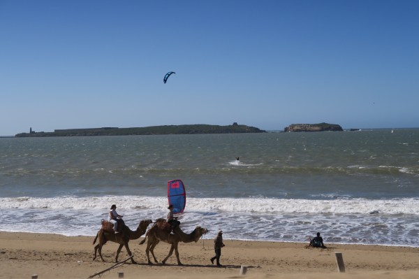 Un petit rajout : en bus pour la plage de Sidi Kaouti, une aventure en soi, entre dromadaires, ânes, surfers, quads et moi…..